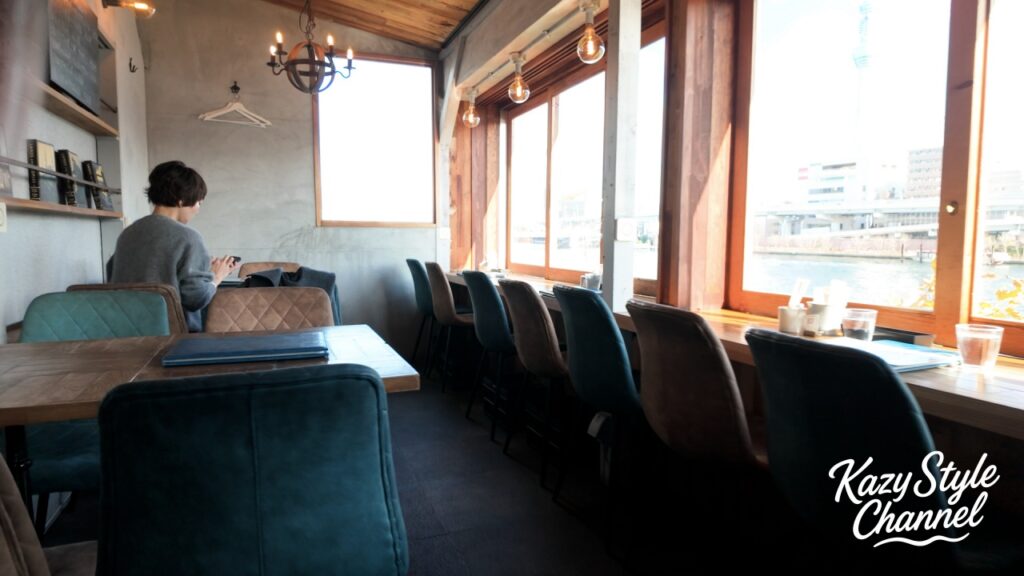 隅田川を眺めながら食事ができるので、ロケーションもとても良くてゆったりできる空間でした。