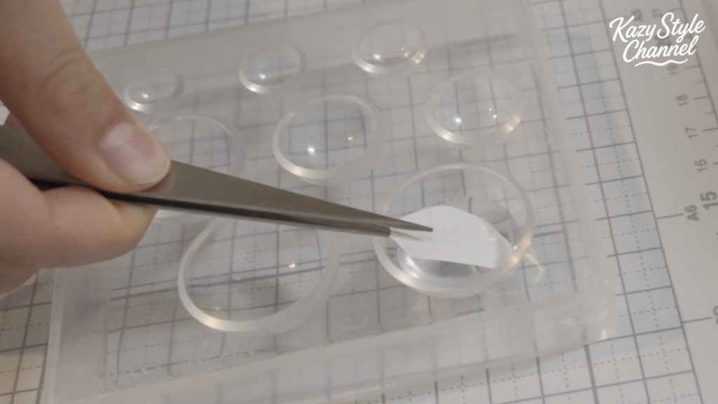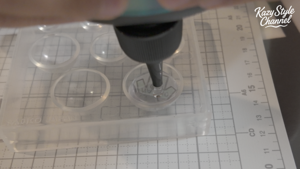 まず、モールドにレジン液を流し込みます。