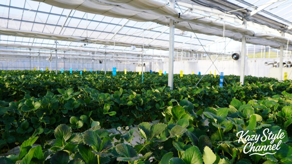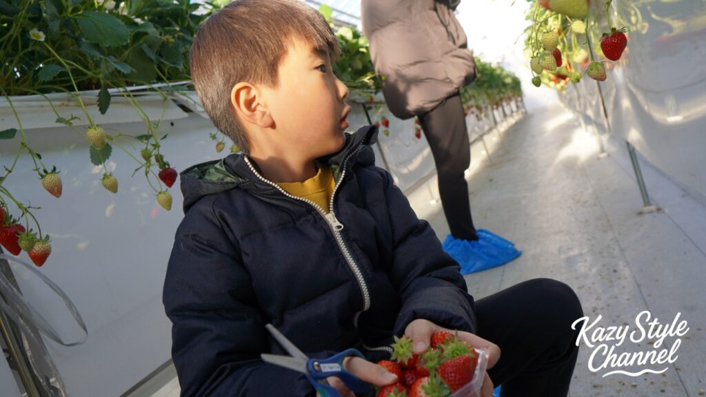 いちご狩りはハウス内なので冬でも暖かく、上着不要。