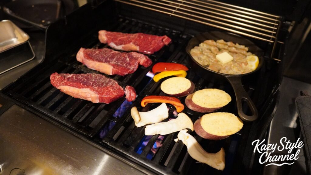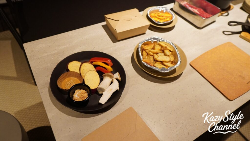 夕食はお部屋のガスコンロで焼くBBQスタイル。