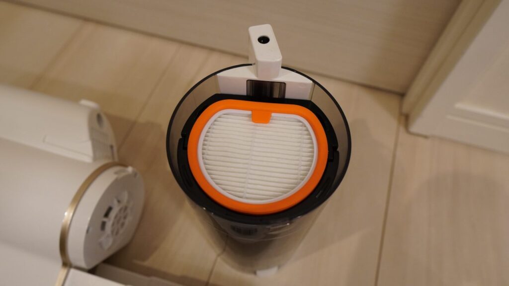 フィルター部分のゴミも、吸引だけでなく物理的に落とす構造になっているため、フィルターにゴミが残りにくい仕組みになっています。