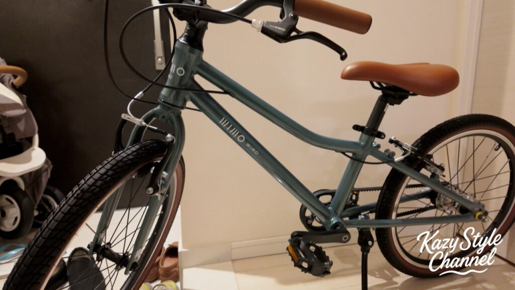 タイヤの茶色い装飾(リボン)や、サドル・ハンドルの色味も統一されていて、全体的にとてもおしゃれなデザインだと感じました。