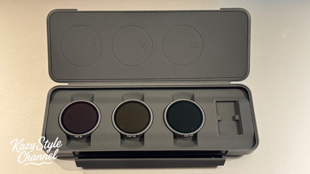 純正NDフィルターは専用ケース付きで、ND8・ND16・ND32の3種類がセットになっています。